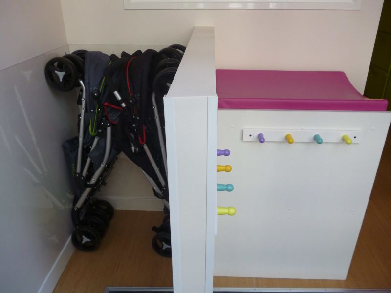 Nous avons sélectionné avec soin le matériel afin de préserver la santé de vos enfants (tapis de sol sans phtalates, mobilier en bois massif  teinté avec des vernis à l'eau non toxiques...)